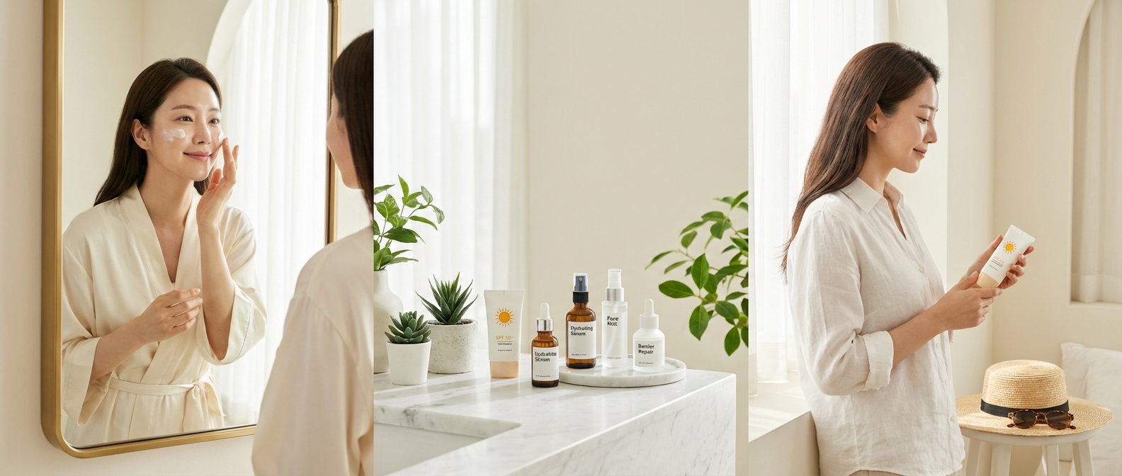 저속 노화를 실천할 때 가장 눈에 띄는 변화는 피부에서 먼저 나타납니다. 피부는 외부 환경에 직접 노출되는 기관이기 때문에 자외선, 건조한 공기, 생활 습관의 영향을 쉽게 받습니다. 화려한 기능성 제품보다 중요한 것은 기본 관리 원칙을 꾸준히 지키는 것입니다.