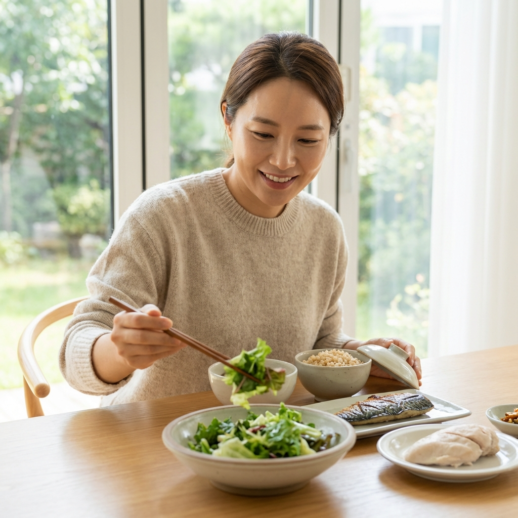 채소 → 단백질 → 탄수화물 순서로 먹는 방식은 혈당 상승 속도를 완만하게 만드는 데 도움이 됩니다. 식이섬유와 단백질이 먼저 들어가면 소화 흡수 속도가 조절되기 때문입니다. 같은 메뉴라도 순서만 바꿔도 체감 차이가 생길 수 있습니다.